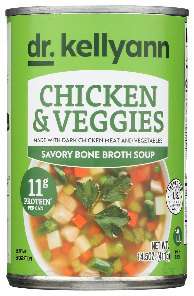 CHICKEN BONE BROTH, WATER, DARK CHICKEN MEAT, CARROTS, CELERY, POTATOES, TAPIOCA STARCH, GREEN PEAS, CHICKEN FAT, BOVINE COLLAGEN CONTAINS LESS THAN 2% OF: ONION POWDER, DRIED PARSLEY, GARLIC POWDER, WHOLE DRIED THYME, TURMERIC, DRIED ROSEMARY, SEA SALT, BLACK PEPPER.