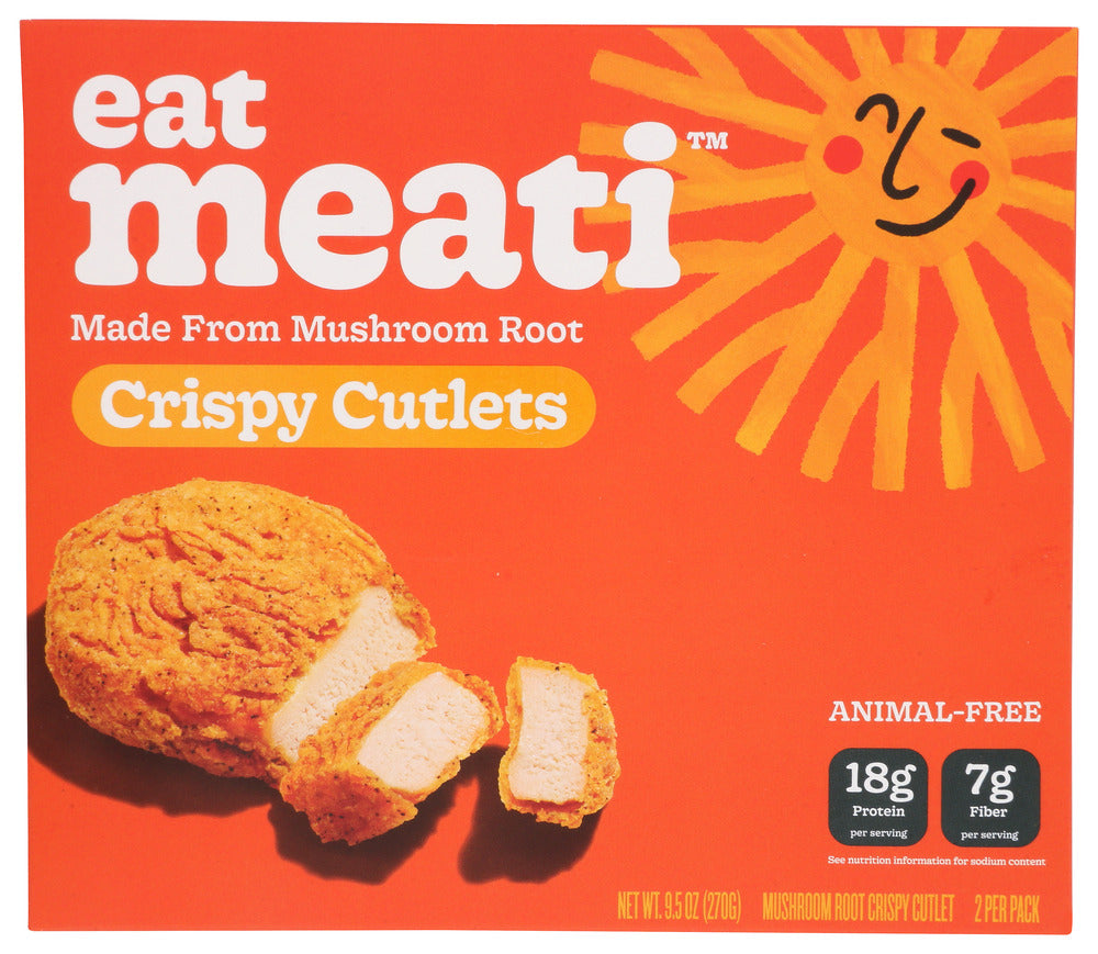 MEATI CUTLET (MUSHROOM ROOT [MYCELIUM], LESS THAN 2% OF: SALT, ACACIA GUM, NATURAL FLAVOR, CHICKPEA FLOUR, OAT FIBER), BREADING (RICE FLOUR, CANOLA OIL, YELLOW CORN FLOUR, POTATO PROTEIN, SALT, LEAVENING [BAKING SODA, DISODIUM DIPHOSPHATE, CALCIUM PHOSPHATE], SPICE, DRIED GARLIC, DRIED ONION, PAPRIKA, PAPRIKA EXTRACT, XANTHAN GUM).