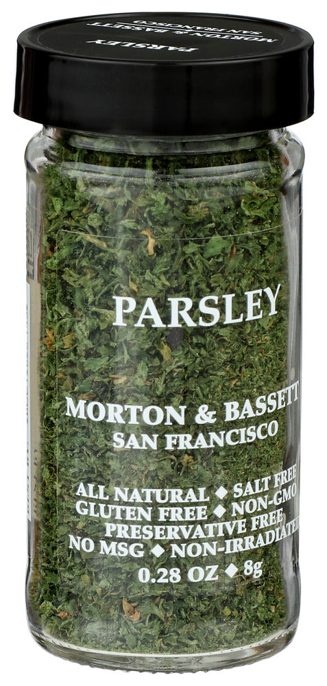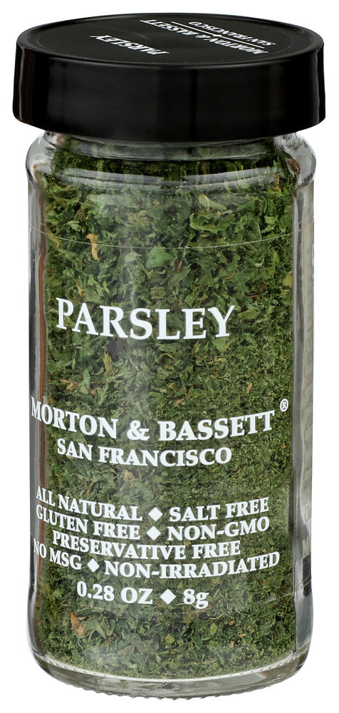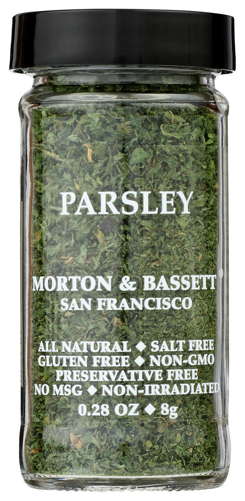 MORTON & BASSETT SPICES PARSLEY IS A KOSHER SPICE THAT LIVENS UP YOUR FAVORITE FOODS. THIS 0.28 OZ. PACKAGE CONTAINS ONLY DELICIOUS PARSLEY, A VERSATILE SPICE THAT WORKS WELL ON SALADS, SOUPS, MEATS AND PASTA SAUCES. THIS ALL-NATURAL PARSLEY IS SALT-FREE, GLUTEN-FREE, PRESERVATIVE-FREE AND CONTAINS NO MSG OR GMO INGREDIENTS.