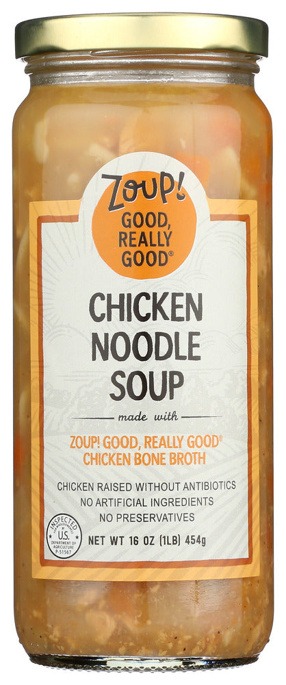 CHICKEN BONE BROTH, CHICKEN, ENRICHED EGG NOODLES [SEMOLINA (WHEAT), EGGS, EGG WHITES, NIACIN, IRON (FERROUS SULFATE), THIAMIN MONONITRATE, RIBOFLAVIN, FOLIC ACID], CARROT, ONION, CELERY, OLIVE OIL, CORN STARCH, SALT, GARLIC, CHICKEN FAT, YEAST EXTRACT, CHICKEN FLAVOR, NATURAL FLAVOR, TURMERIC, SPICE.