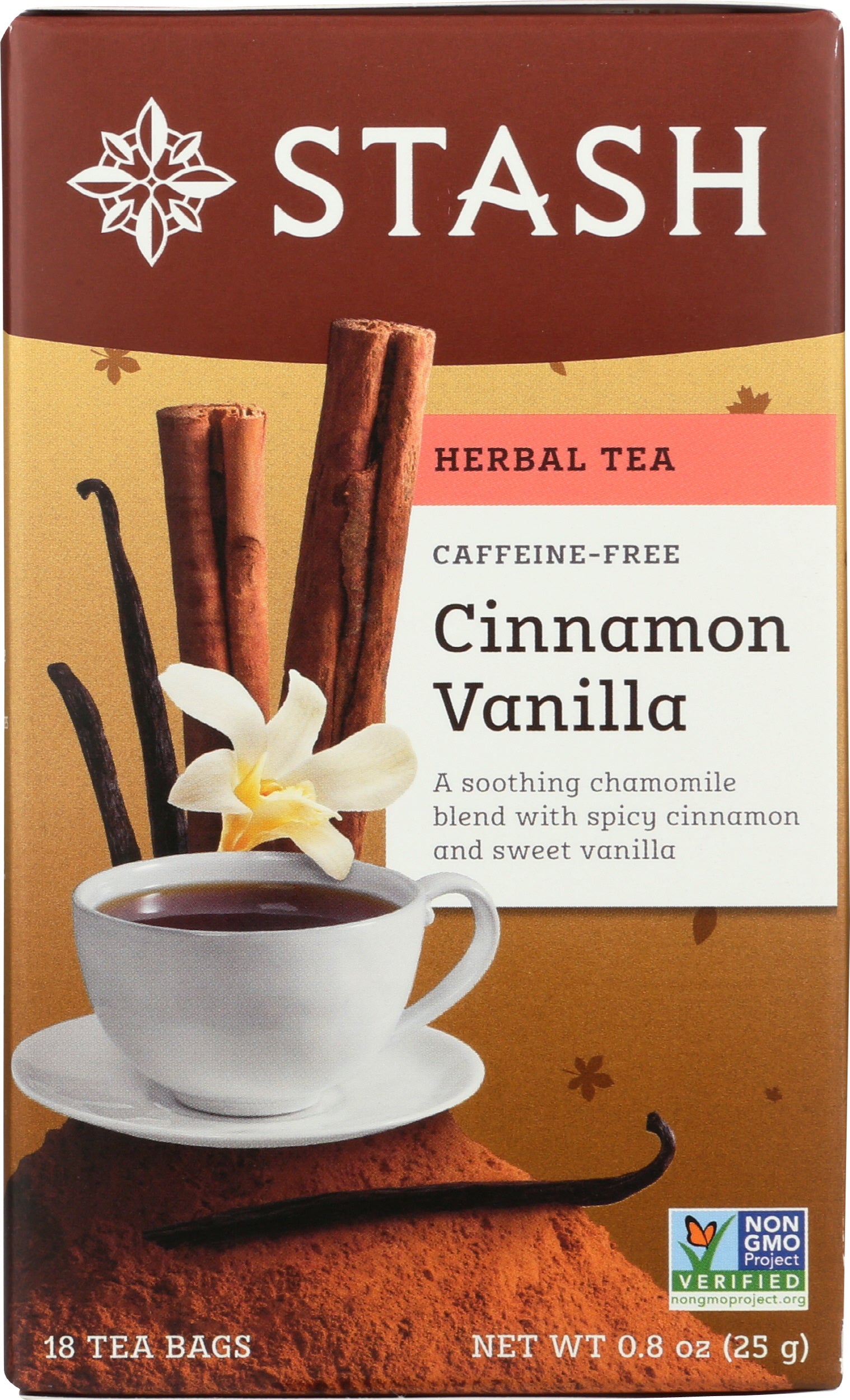 CINNAMON, ROOIBOS, CHAMOMILE, SARSAPARILLA, NATURALLY VANILLA FLAVOR.
