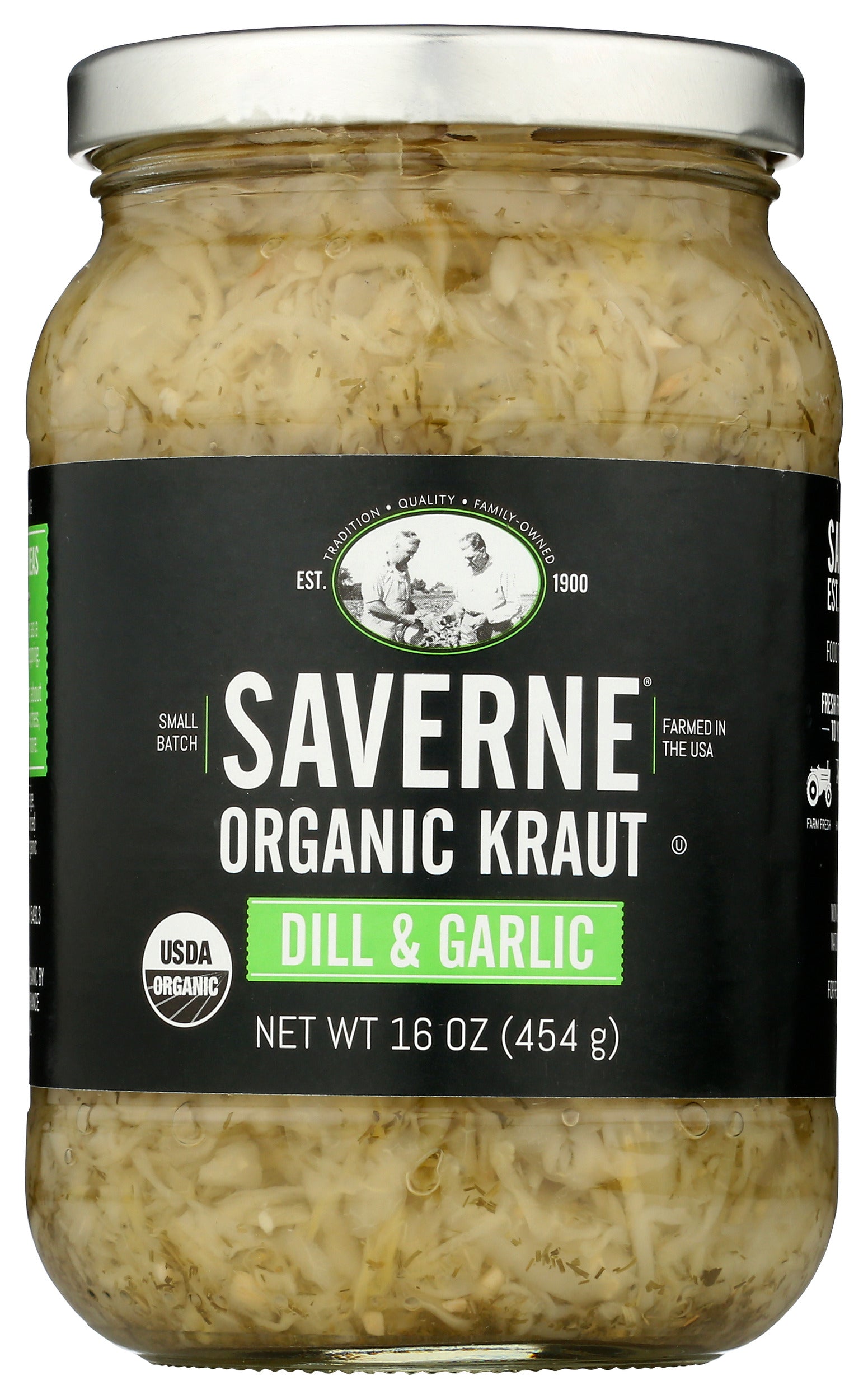 ORGANIC CABBAGE, WATER, SEA SALT, ORGANIC MINCED GARLIC, ORGANIC DILL WEED, ORGANIC FLAVOR, LACTIC ACID