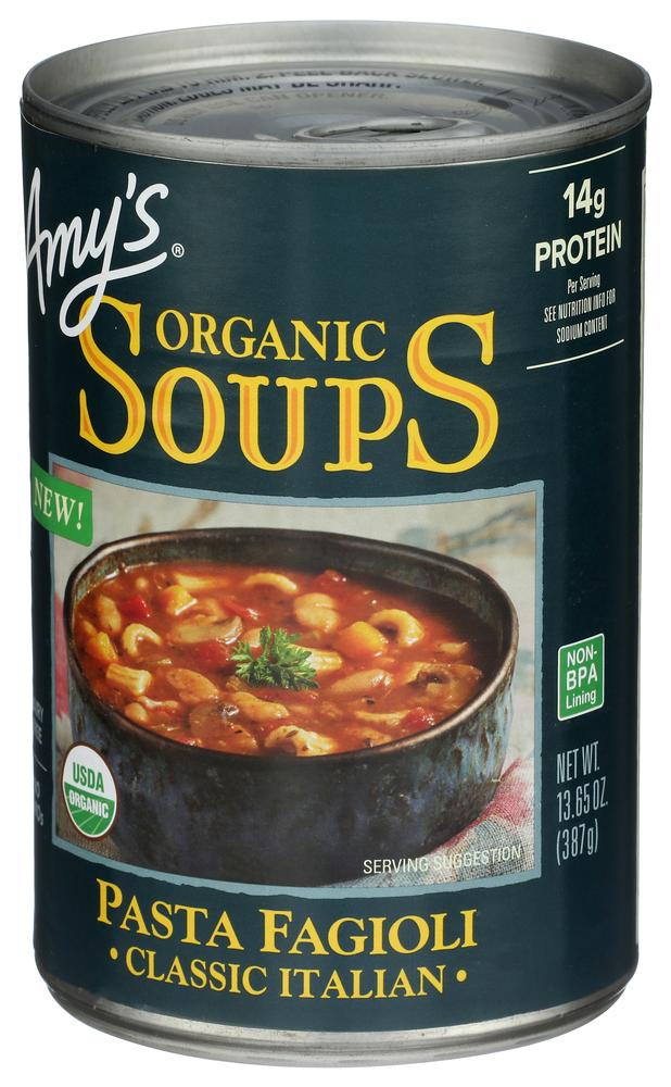 FILTERED WATER, ORGANIC WHITE CANNELLINI BEANS, ORGANIC DICED TOMATOES, ORGANIC RED ONIONS, ORGANIC MUSHROOMS, ORGANIC CARROTS, ORGANIC CELERY, ORGANIC BELL PEPPERS, ORGANIC PASTA (ORGANIC DURUM WHEAT SEMOLINA FLOUR, FILTERED WATER), ORGANIC LEEKS, ORGANIC EXTRA VIRGIN OLIVE OIL, ORGANIC BASIL, ORGANIC PARSLEY, ORGANIC TOMATO PUREE, ORGANIC GARLIC, SEA SALT, ORGANIC BALSAMIC VINEGAR (ORGANIC WINE VINEGAR, ORGANIC GRAPE MUST), ORGANIC SPICES, ORGANIC BLACK PEPPER.