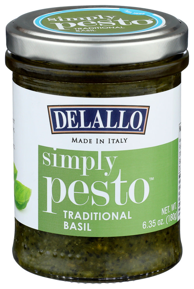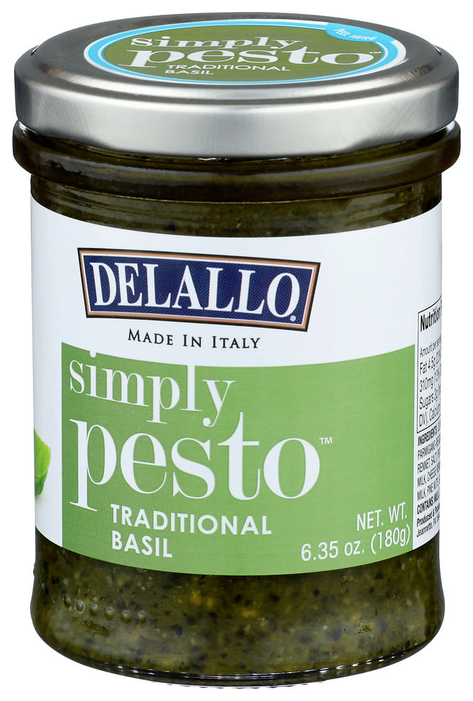SIMPLY PESTO TRADITIONAL PESTO SAUCE IN OLIVE OIL IS A TRADITIONAL GENOVESE BASIL PESTO, AN AUTHENTIC RECIPE FEATURING SWEET BASIL IN A FRAGRANT BLEND OF OLIVE OIL, CRUNCHY PINE NUTS, CASHEWS, GARLIC AND TWO ITALIAN CHEESES, PARMIGIANO REGGIANO AND PECORINO ROMANO. EACH JAR CONTAINS 6.35 OZ. OF PESTO. SEE NUTRITION FACTS PANEL FOR ALLERGENS.