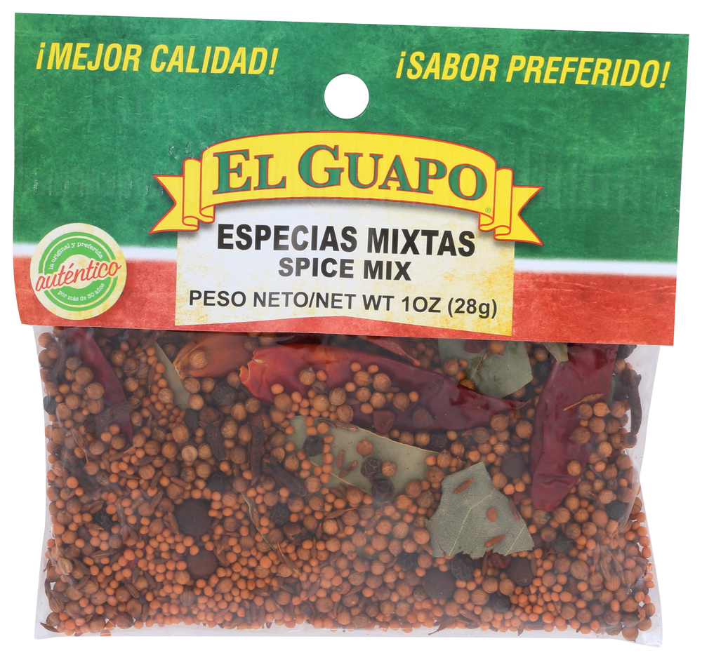 ADD YOUR PREFERRED FLAVOR TO DISHES WITH EL GUAPO AUTHENTIC SPICE MIX. WE INCLUDE MUSTARD SEED, CUMIN, CORIANDER SEEDS, ALLSPICE AND RED CHILI IN OUR SEASONING MIX. THIS SPICE MIX IS OF THE HIGHEST QUALITY AND MAKES TRADITIONAL HISPANIC-STYLE FOODS TASTE LIKE HOME. OUR SPICE MIX COMES IN ONE 1 OZ. BAG.