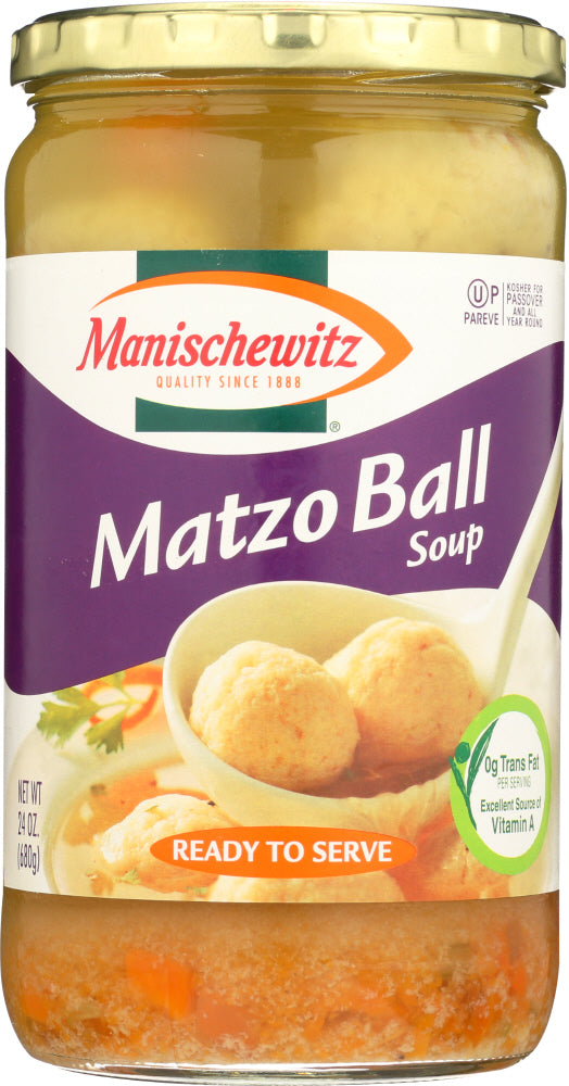 WATER, MATZO BALLS (PASSOVER MATZO MEAL [GROUND MATZO MEAL MADE FROM PASSOVER WHEAT FLOUR AND WATER], WHOLE EGGS, WATER, EGG WHITES, PALM OIL, SALT, FLAVORING), CARROTS, SUGAR, CELERY, POTATO STARCH, MONOSODIUM GLUTAMATE, EXTRACTIVES OF PEPPER AND SPICES, ONION POWDER, GARLIC POWDER, FD&C YELLOW NO. 5.