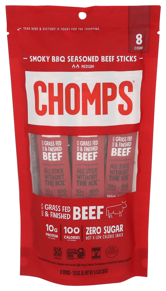 CHOMPS SMOKY BBQ BEEF JERKY STICKS; 8 COUNT 1.15OZ STICKS