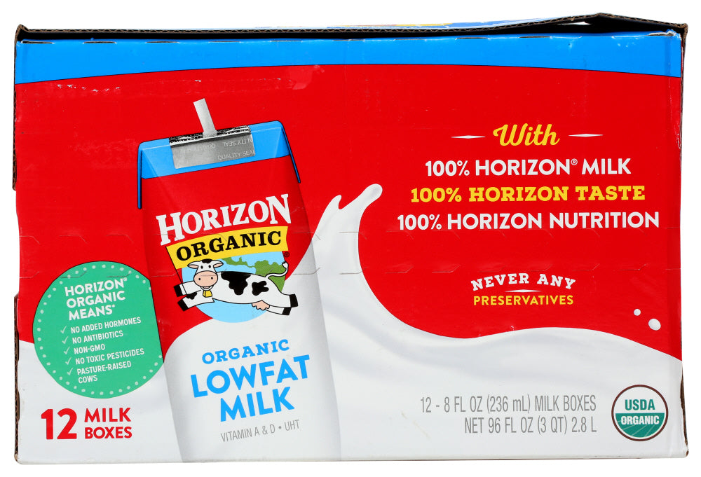 GRADE A LOWFAT ORGANIC MILK, VITAMIN A PALMITATE, VITAMIN D3.