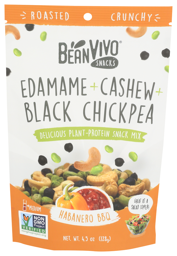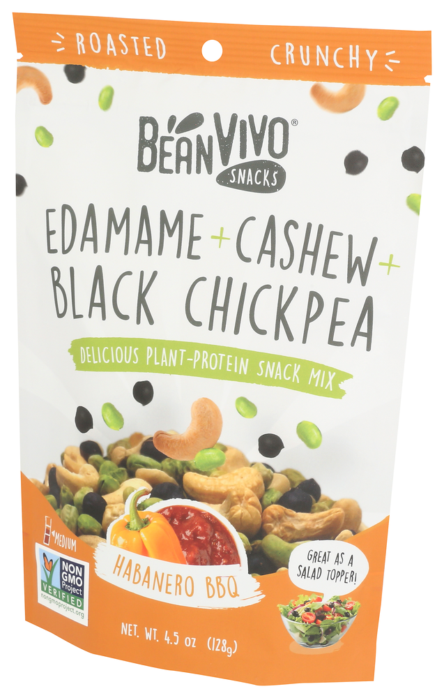 DRY ROASTED CASHEWS, ROASTED HABANERO BBQ BLACK CHICKPEAS (HEIRLOOM BLACK CHICKPEAS, SUNFLOWER OIL, SEASONING [CANE SUGAR, SEA SALT, ONION, TOMATO POWDER, CHILI PEPPER, BROWN SUGAR, MOLASSES POWDER* {MOLASSES*, RICE MALTODEXTRIN*}, GARLIC, VINEGAR POWDER* {RICE MALTODEXTRIN*, VINEGAR*}, BLACK PEPPER, CUMIN, HABANERO CHILI PEPPER, SILICON DIOXIDE {TO PREVENT CAKING}, SUNFLOWER OIL, NATURAL HICKORY FLAVOR {POTATO MALTODEXTRIN, SMOKE FLAVOR, SILICON DIOXIDE}, NATURAL FLAVOR {SUNFLOWER OIL, SMOKE FLAVOR}]), DRIED EDAMAMES (SOY BEANS).