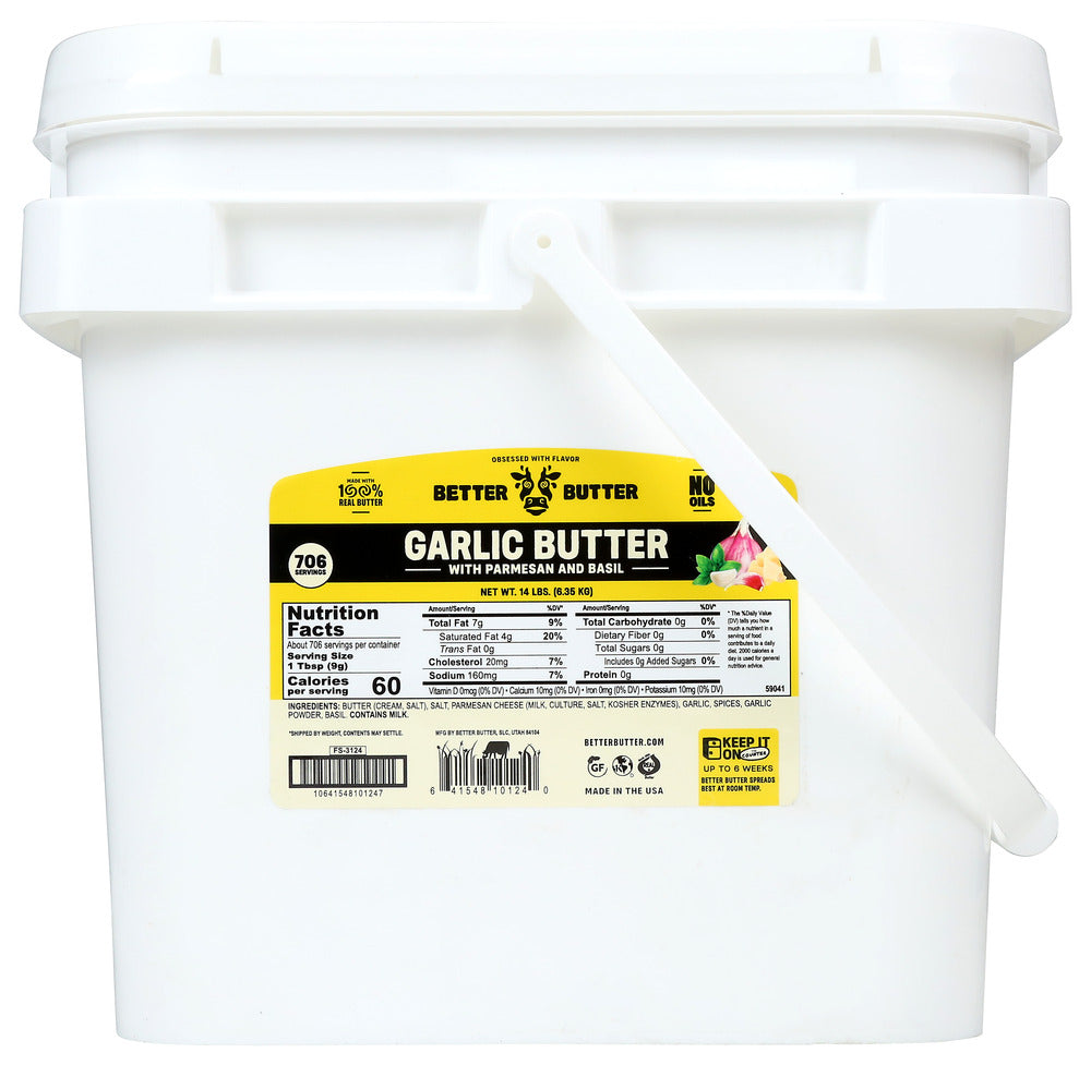 BUTTER (CREAM, SALT), SALT, PARMESAN CHEESE (MILK, CULTURE, SALT, KOSHER ENZYMES), GARLIC, SPICES, GARLIC POWDER, BASIL.