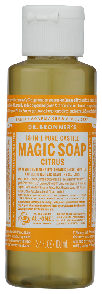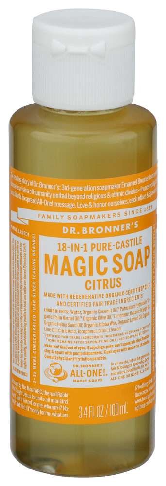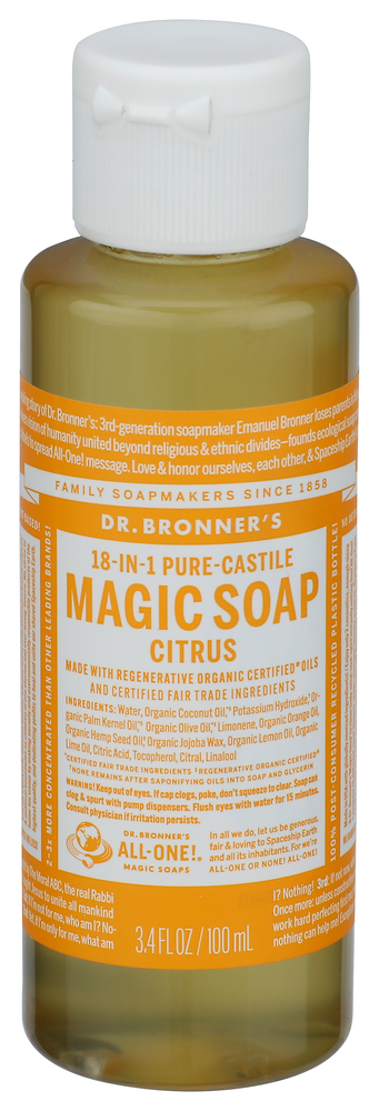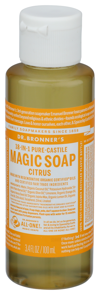 WATER, ORGANIC COCONUT OIL*‡, POTASSIUM HYDROXIDE†, ORGANIC PALM KERNEL OIL*‡, ORGANIC OLIVE OIL*‡, LIMONENE, ORGANIC ORANGE OIL, ORGANIC HEMP SEED OIL‡, ORGANIC JOJOBA WAX, ORGANIC LEMON OIL, ORGANIC LIME OIL, CITRIC ACID, TOCOPHEROL, CITRAL, LINALOOL