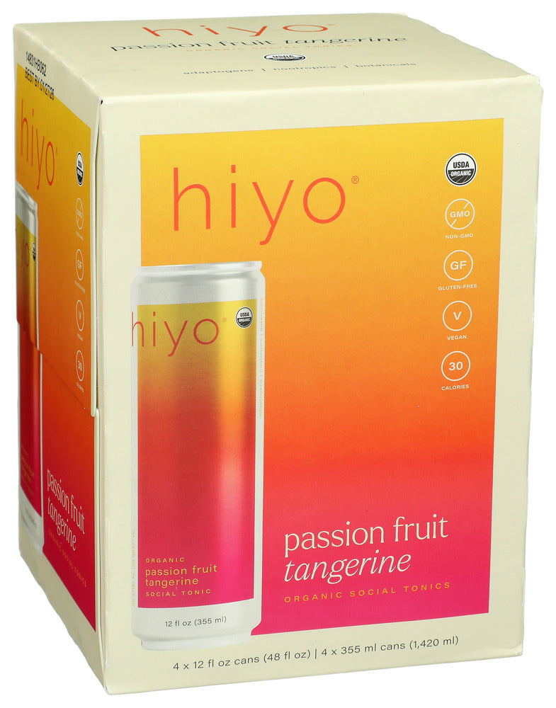 CARBONATED FILTERED WATER, ORGANIC PASSION FRUIT JUICE CONCENTRATE, ORGANIC ERYTHRITOL, ORGANIC CANE SUGAR, ORGANIC FLAVORS, ORGANIC GUM ACACIA, ORGANIC LEMON BALM EXTRACT, ORGANIC TANGERINE JUICE CONCENTRATE, ORGANIC KSM-66 ASHWAGANDHA EXTRACT, CITRIC ACID, ORGANIC PASSION FLOWER EXTRACT, ORGANIC GREEN TEA EXTRACT* (L-THEANINE), ORGANIC GINGER EXTRACT, ORGANIC LION'S MANE MUSHROOM EXTRACT, ORGANIC FRUIT AND VEGETABLE JUICE (COLOR)