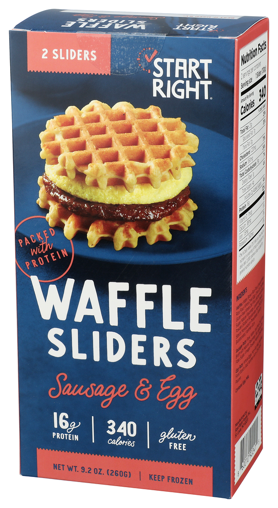 • HEATING INSTRUCTIONS FOR CRISPY WAFFLES 1. REMOVE WAFFLES FROM PACKAGING AND PLACE IN TOASTER. TOAST ON LOW SETTING. 2. WHILE WAFFLES ARE TOASTING, WRAP SAUSAGE & EGG IN A PAPER TOWEL AND MICROWAVE FOR 50-60 SECONDS. 3. FLIP SAUSAGE & EGG AND MICROWAVE FOR AN ADDITIONAL 40-50 SECONDS OR UNTIL HOT. 4. ASSEMBLE & ENJOY! QUICK & EASY 1. REMOVE FROM PACKAGING AND WRAP ENTIRE SLIDER IN A PAPER TOWEL. 2. MICROWAVE FOR 50-60 SECONDS. 3. FLIP SLIDER AND MICROWAVE FOR AN ADDITIONAL 40-50 SECONDS OR UNTIL HOT. 4. LET STAND 1-2 MINUTES, THEN ENJOY!