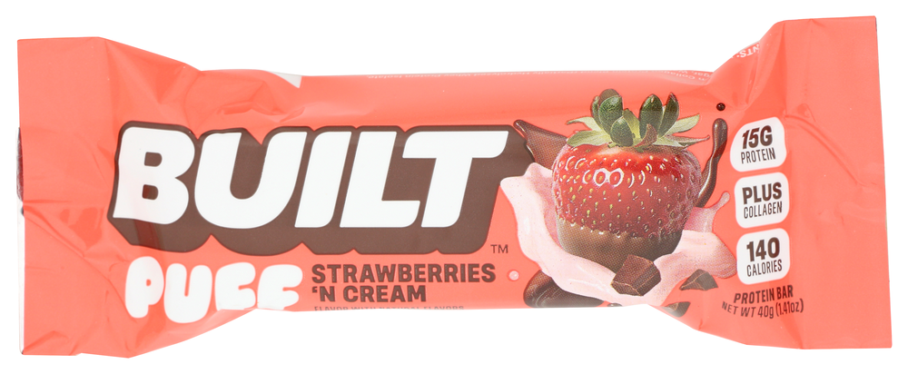 PREMIUM COLLAGEN PROTEIN BLEND (PARTIALLY HYDROLYZED WHEY PROTEIN ISOLATE, COLLAGEN), GLYCERIN, SUGAR, WATER, PALM AND PALM KERNEL OIL, FRUITY STRAWBERRY PIECES (FRUIT BLEND (APPLE PUREE, STRAWBERRY PUREE, STRAWBERRY JUICE, CHERRY JUICE) SUGAR, FRUCTOSE SYRUP, RICE FLOUR, PECTIN, COCOA BUTTER, CITRIC ACID, NATURAL FLAVORS), COCOA PROCESSED WITH ALKALI, GELATIN, NONFAT MILK POWDER, NATURAL FLAVORS, CULTURED DEXTROSE, RED BEET JUICE COLOR, SOY LECITHIN.