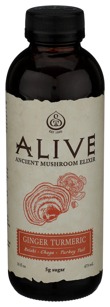 CONTAINS LIVE PROBIOTICS, RAW VINEGAR, AND PLANT ADAPTOGENS, INGREDIENTS INCLUDE REISHI, CHAGA AND TURKEY TAIL MUSHROOMS, ORGANICALLY PRODUCED, ZERO TRANS FATS, ONE 16 OZ. BOTTLE OF GUAYUSA TURMERIC SPARKLING PROBIOTIC CIDER