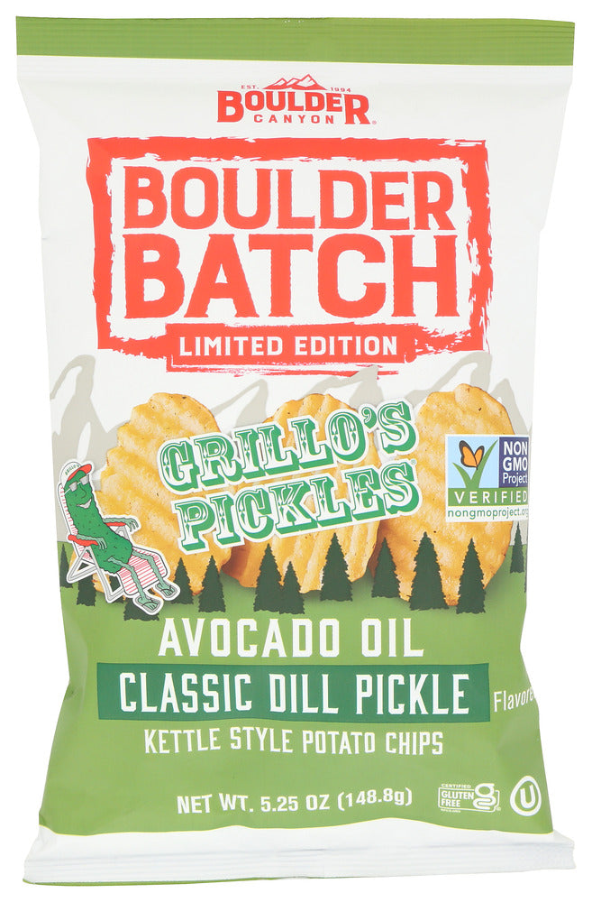 POTATOES, AVOCADO OIL, MALTODEXTRIN, SALT, GARLIC POWDER, CANE SUGAR, ONION POWDER, WHITE DISTILLED VINEGAR, CITRIC ACID, NATURAL FLAVORS, TURMERIC EXTRACT (COLOR), YEAST EXTRACT, DILL WEED.