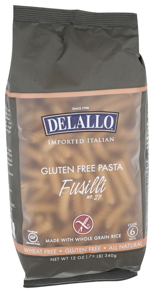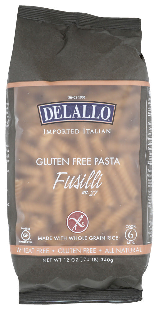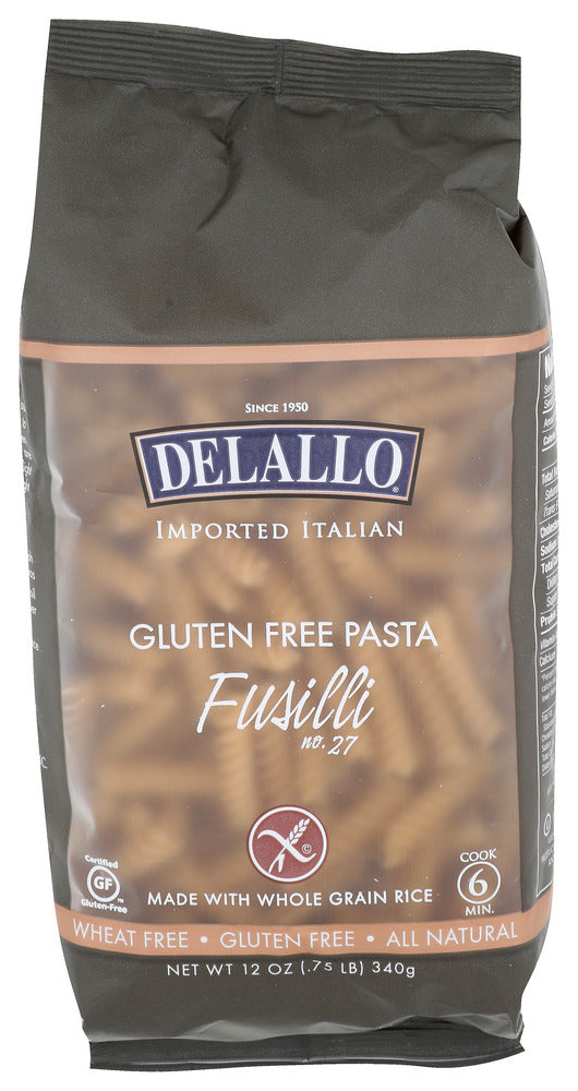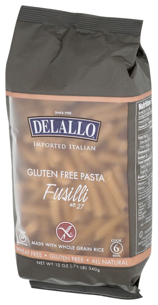 DELALLO GLUTEN-FREE FUSILLI PASTA IS A GREAT SUBSTITUTE FOR TRADITIONAL WHEAT PASTA. SINCE IT IS MADE WITH THE HIGHEST QUALITY WHOLE GRAIN RICE, THIS PASTA IS ALL-NATURAL, KOSHER AND NON-GMO. THIS IMPORTED ITALIAN PASTA COOKS IN 6 MINUTES. EACH BAG OF DELALLO GLUTEN-FREE FUSILLI PASTA CONTAINS 12 OZ. OF PRODUCT.