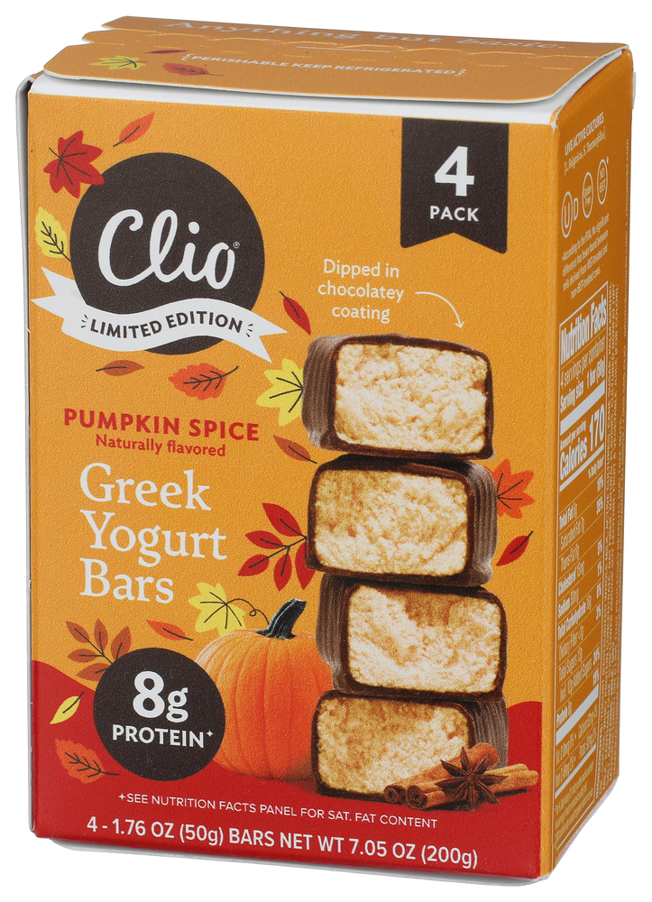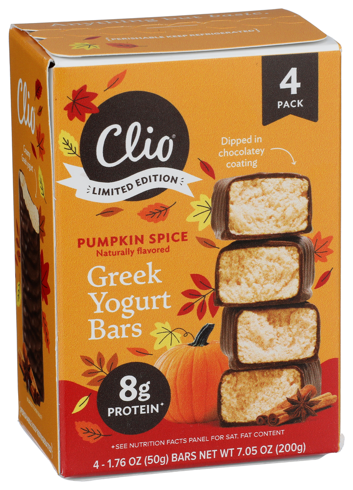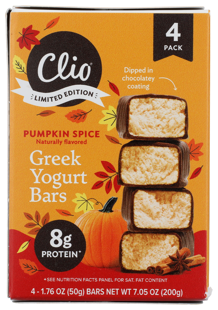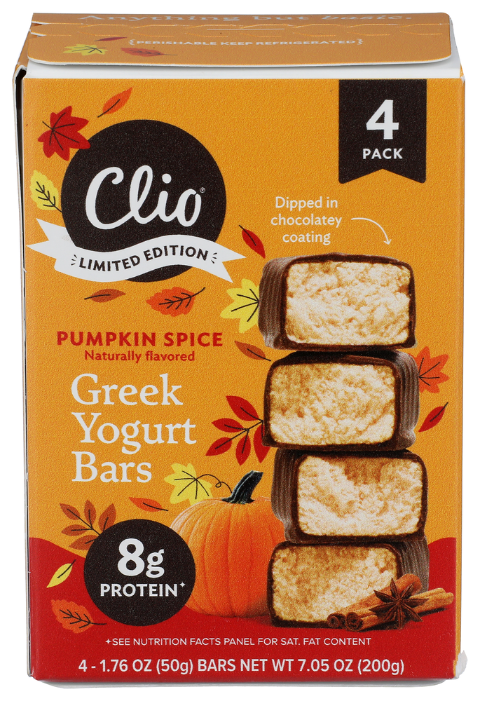 CLIO SNACKS PUMPKIN SPICE - DARK CHOCOLATE COVERED GREEK YOGURT BARS