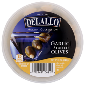 GREEN PITTED OLIVES (OLIVES, WATER, SALT, CITRIC ACID, ASCORBIC ACID), GARLIC, LACTIC ACID.