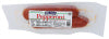 PORK, BEEF, SALT, CONTAINS 2% OR LESS OF SUGAR, SPICES, OLEORESIN OF PAPRIKA, PAPRIKA, SODIUM ERYTHORBATE, LACTIC ACID STARTER CULTURE, SODIUM NITRITE, BHA, BHT, CITRIC ACID, COLLAGEN CASING.