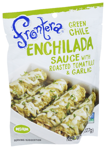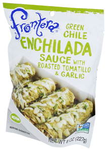 - 8 CORN TORTILLAS 8 OUNCES (ABOUT 2 CUPS) SHREDDED MONTEREY JACK OR MILD CHEDDAR CHEESE 1 POUCH FRONTERA ENCHILADA SAUCE 1 PREHEAT OVEN TO 400°F. WRAP TORTILLAS IN DAMP PAPER TOWEL. MICROWAVE ON HIGH UNTIL HOT, ABOUT 30 SECONDS. 2 ROLL ¼ CUP CHEESE INTO EACH WARM TORTILLA. PLACE SIDE BY SIDE IN AN 8-INCH SQUARE BAKING DISH, SEAMSIDE DOWN. COMPLETELY COVER TORTILLAS WITH SAUCE. SPRINKLE WITH REMAINING CHEESE. 3 BAKE UNTIL BUBBLY HOT, ABOUT 15 MINUTES. SERVE HOT. VARIATION: SUBSTITUTE SHREDDED COOKED CHICKEN OR BEEF FOR THE CHEESE IN THE FILLING.
