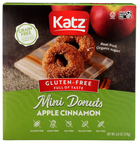 GLUTEN FREE FLOUR (POTATO STARCH, TAPIOCA STARCH, ARROWROOT FLOUR, CASSAVA FLOUR), ORGANIC SUGAR, HIGH-OLEIC SUNFLOWER OIL, WATER, EGGS, APPLES, BAKING POWDER (SODIUM ACID PYROPHOSPHATE, POTATO STARCH, MONOCALCIUM, PHOSPHATE), SUNFLOWER LECITHIN, SALT, XANTHAN GUM, NATURAL FLAVOR, CINNAMON.