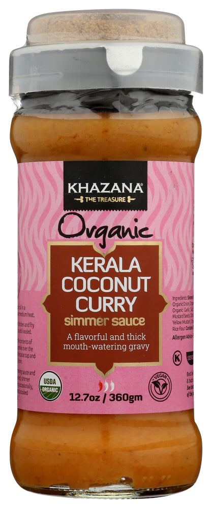 SIMMER SAUCE: ORGANIC COCONUT MILK, ORGANIC TOMATO, WATER, ORGANIC ONION, ORGANIC SUNFLOWER OIL, ORGANIC GINGER, ORGANIC CASHEW NUTS, ORGANIC GARLIC, SALT, ORGANIC GARAM MASALA, ORGANIC TAMARIND, ORGANIC MUSTARD SEEDS, CITRIC ACID, CURRY LEAVES. SPICE CAP: ORGANIC CUMIN, ORGANIC YELLOW MUSTARD, ORGANIC BLACK PEPPER, ORGANIC BLACK CARDAMOM, ORGANIC RICE FLOUR.