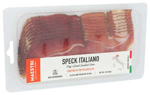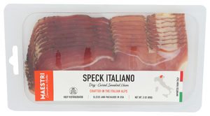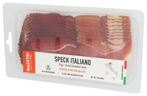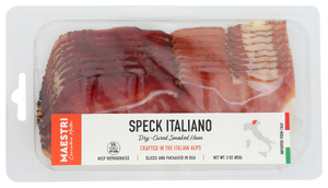 SPECK ITALIANO IS A DELICACY IMPORTED FROM THE NORTH OF ITALY. IT IS A DRY-CURED SMOKED HAM IMPORTE