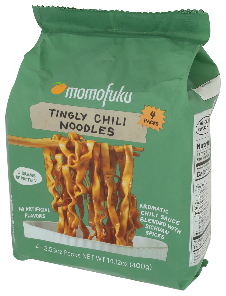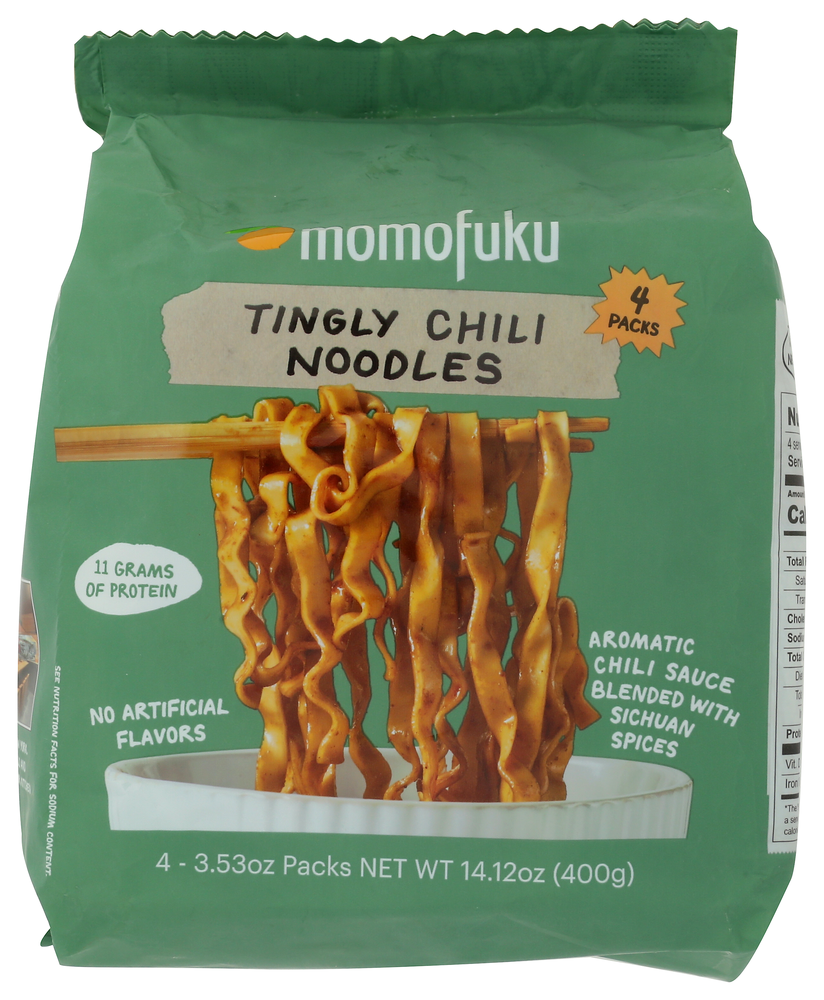NOODLES: WHEAT FLOUR, SALT, HIGH OLEIC SUNFLOWER OIL, TOCOPHEROLS (TO PROTECT QUALITY), SOY LECITHIN, OLIVE LEAF EXTRACT., SAUCE: SOY SAUCE (WATER, DEFATTED SOYBEANS, SALT, WHEAT, ALCOHOL [TO PROTECT QUALITY]), SUGAR, CANOLA OIL, CHILI OIL (CANOLA OIL, RED PEPPER POWDER, ONION, PAPRIKA EXTRACT, GARLIC, PEPPER EXTRACT), TOMATO PASTE, ONION POWDER, GARLIC, YEAST EXTRACT, BROWN RICE VINEGAR, MOLASSES, SPICES (SICHUAN PEPPER, BLACK PEPPER, STAR ANISE, GINGER), RED PEPPER SEED OIL, SICHUAN PEPPER EXTRACT, PEPPER EXTRACT.