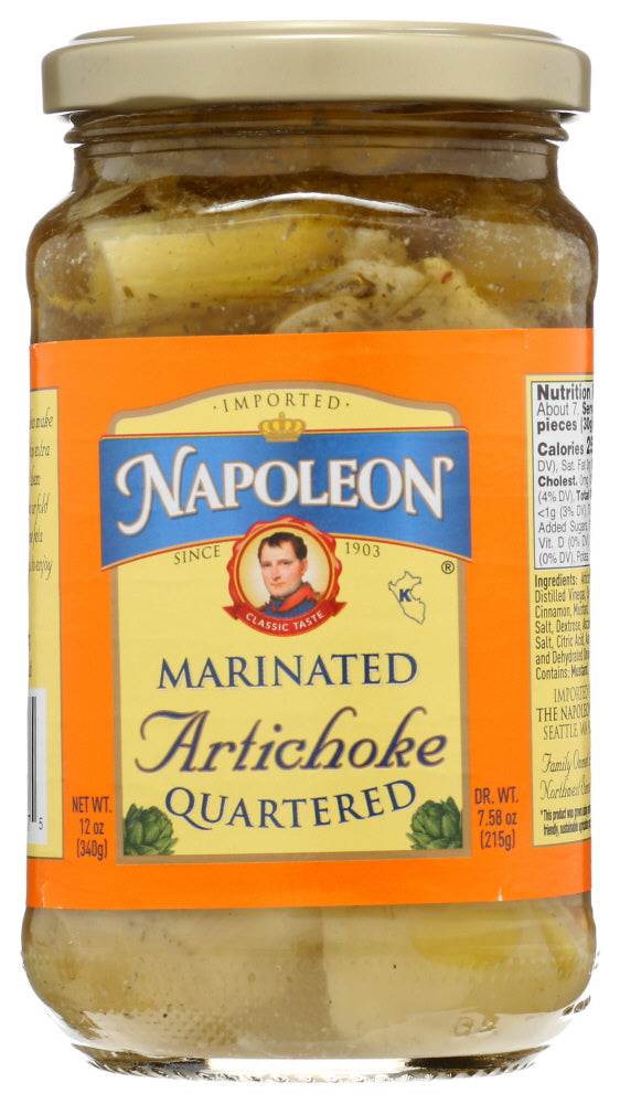 ARTICHOKE, WATER, SUNFLOWER OIL, DISTILLED VINEGAR, SPICES (ALLSPICE, BLACK PEPPER, CINNAMON, MUSTARD, OREGANO, PARSLEY, RED PEPPER, SALT, DEXTROSE, ASCORBIC ACID AND SILICON DIOXIDE), SALT, CITRIC ACID, ASCORBIC ACID, DEHYDRATED GARLIC AND DEHYDRATED ONION.