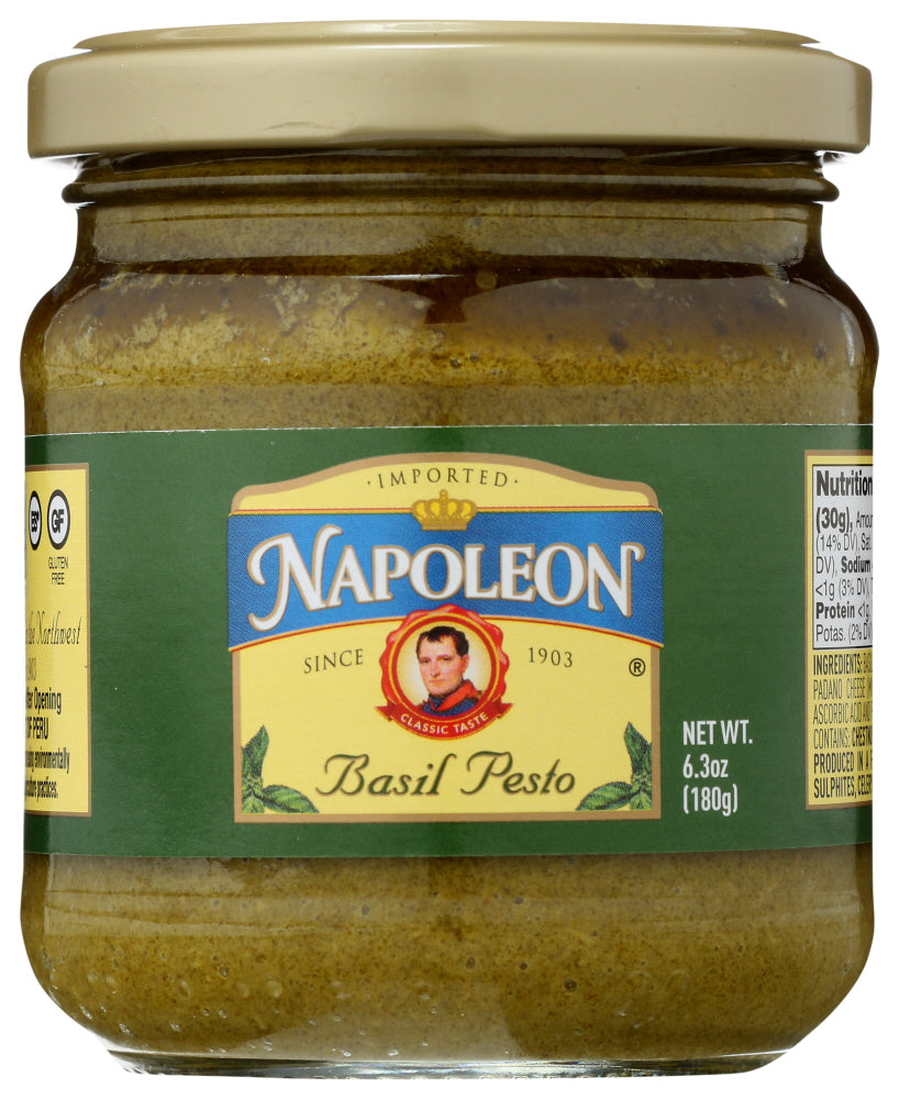BASIL, SUNFLOWER OIL, CHESTNUTS, SALT, DEHYDRATED POTATOES, GRANA PADANO CHEESE (MILK, SALT, RENNET AND LYSOZYME), GARLIC, SUGAR, CITRIC ACID, ASCORBIC ACID AND PINENUTS.