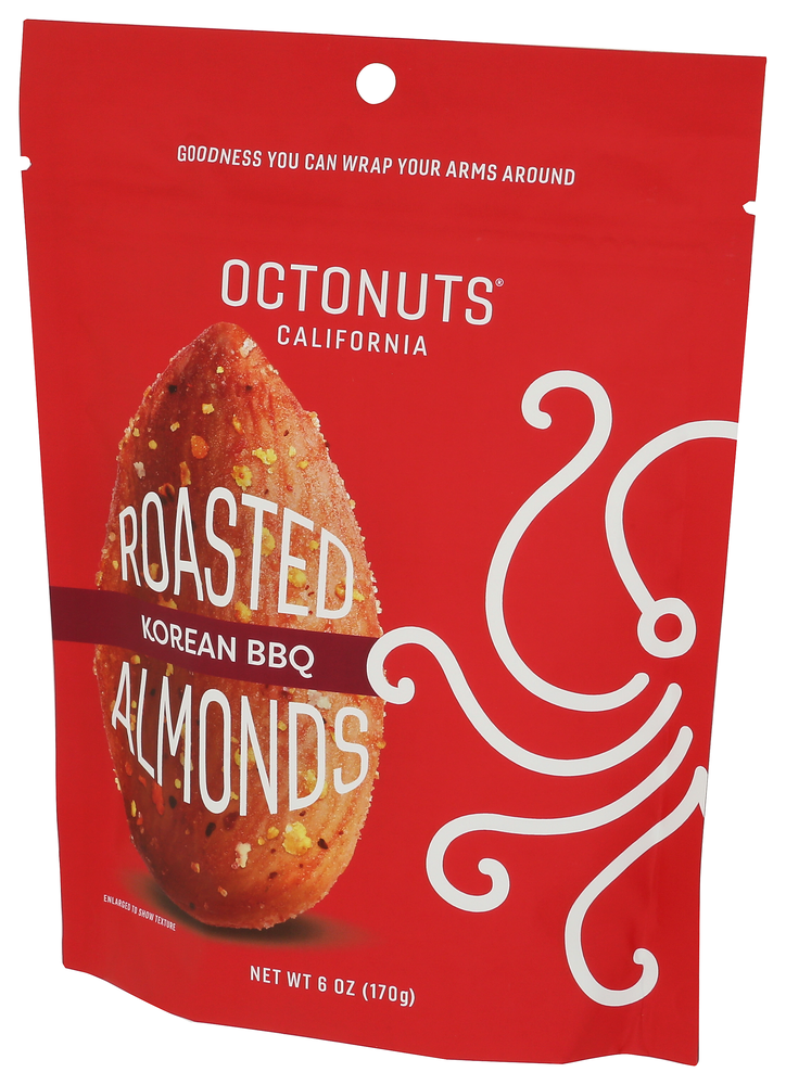 ALMONDS, KOREAN BBQ SEASONING (SALT, BROWN SUGAR, SUGAR, MALTODEXTRIN, GARLIC POWDER, RED BELL PEPPER POWDER, ONION POWDER, CHILI PEPPER, CAYENNE PEPPER SAUCE POWDER [AGED CAYENNE RED PEPPERS, DISTILLED VINEGAR, SALT, GARLIC POWDER], SPICES, WHITE DISTILLED VINEGAR, TOASTED SESAME OIL, CITRIC ACID, EXTRACTIVE OF PAPRIKA [COLOR], NATURAL FLAVORS), ALMOND OIL.