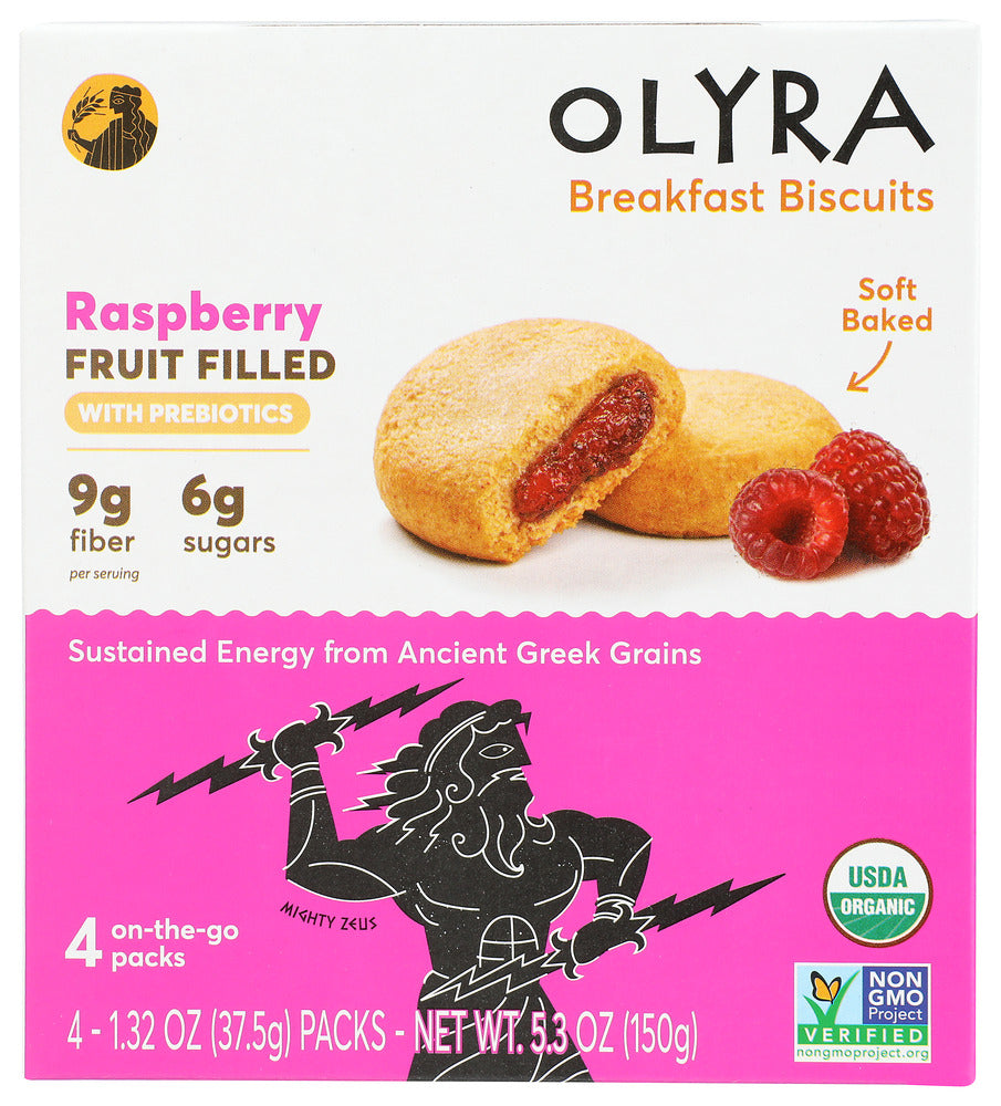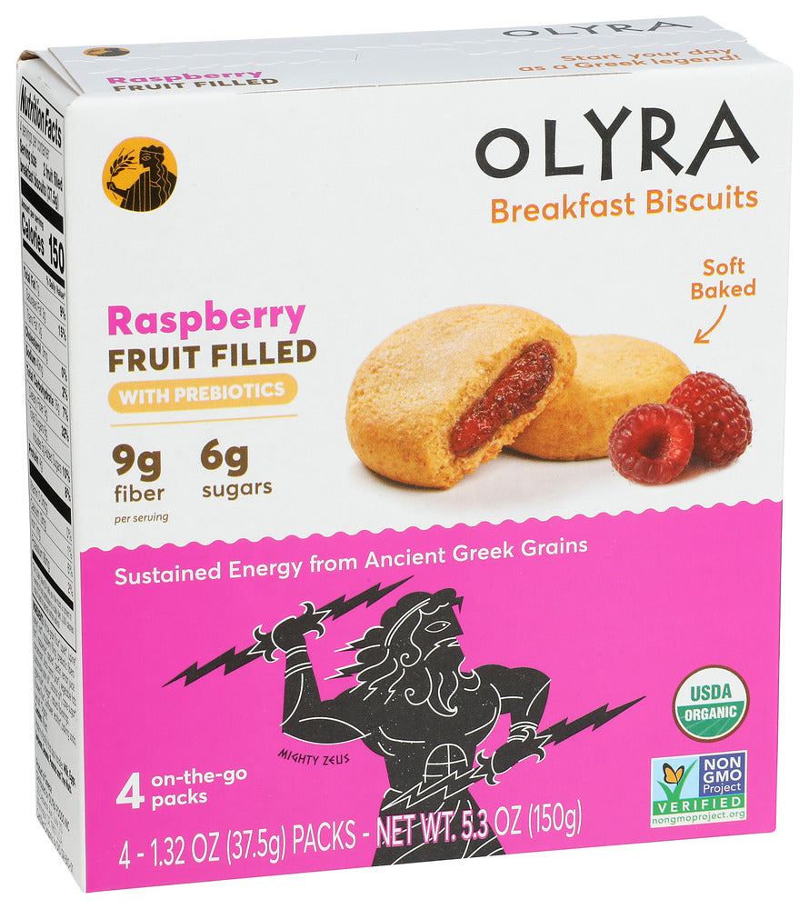 WHOLE GRAIN FLOUR* (SPELT*, LUPINE*, BARLEY*, OAT*), RASPBERRY FILLING (PREBIOTIC FIBERS (FRUCTOOLIGOSACCHARIDES*), RASPBERRIES*, APPLES*, PECTIN, LEMON JUICE CONCENTRATE*, BLACK CARROT JUICE*), VEGETABLE FATS* (SUSTAINABLE PALM OIL*, COCONUT OIL*), CANE SUGAR*, AGAVE INULIN*, VINEGAR*, NATURAL FLAVORINGS, FLAXSEED FLOUR*, SUNFLOWER LECITHIN*, BAKING SODA, SEA SALT.