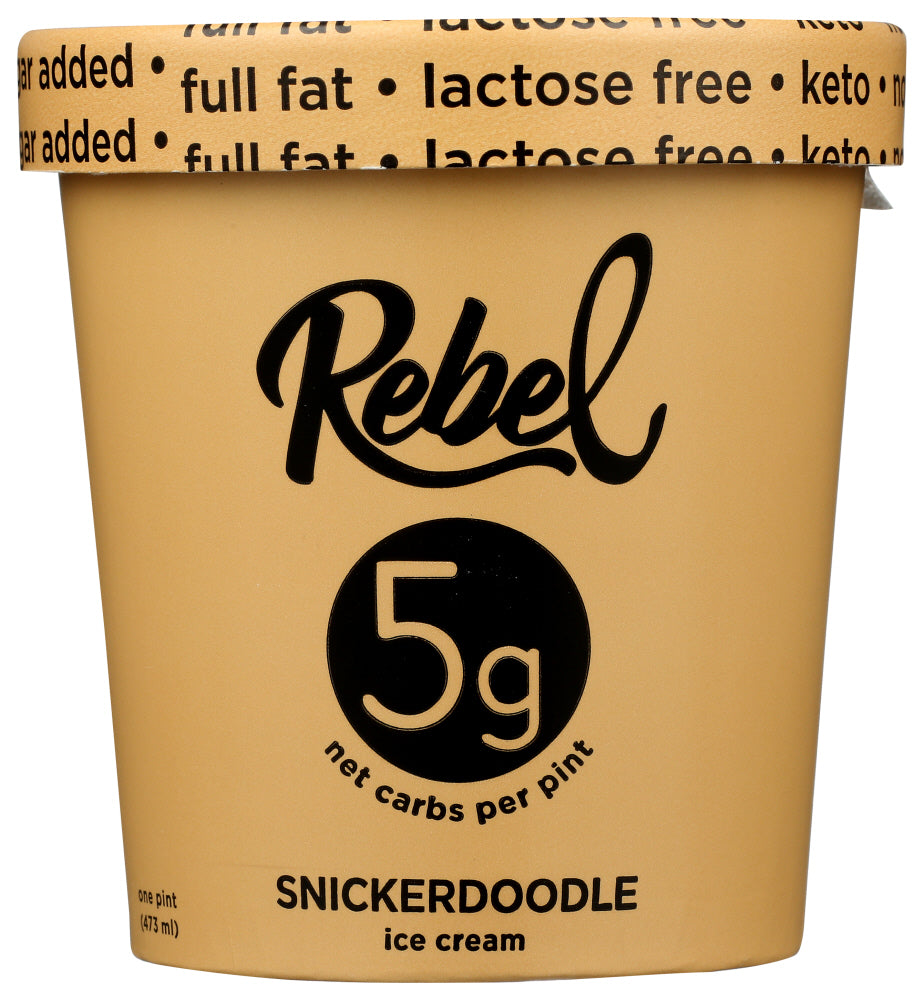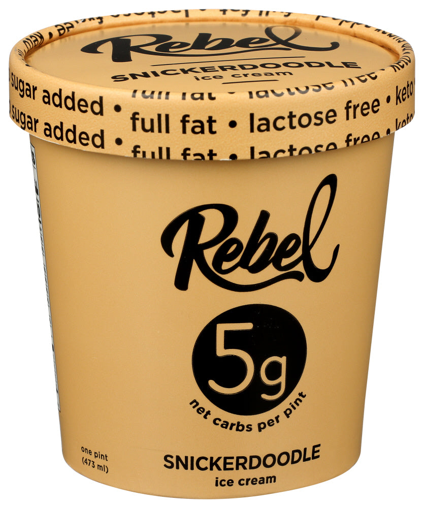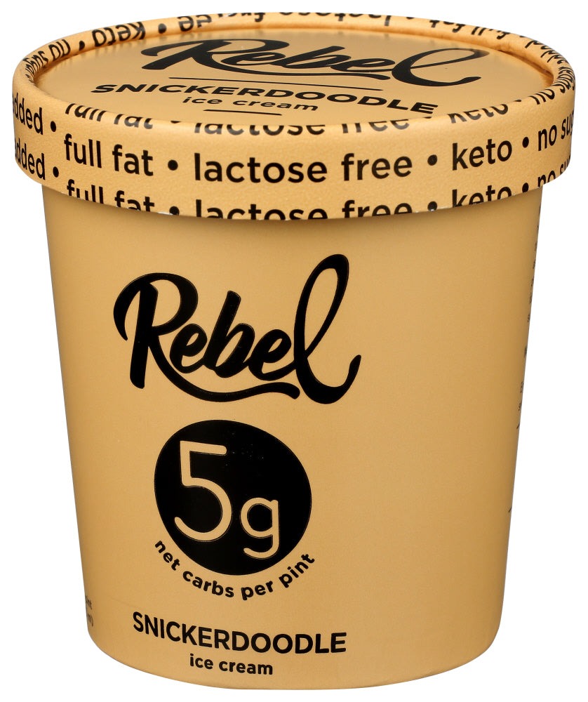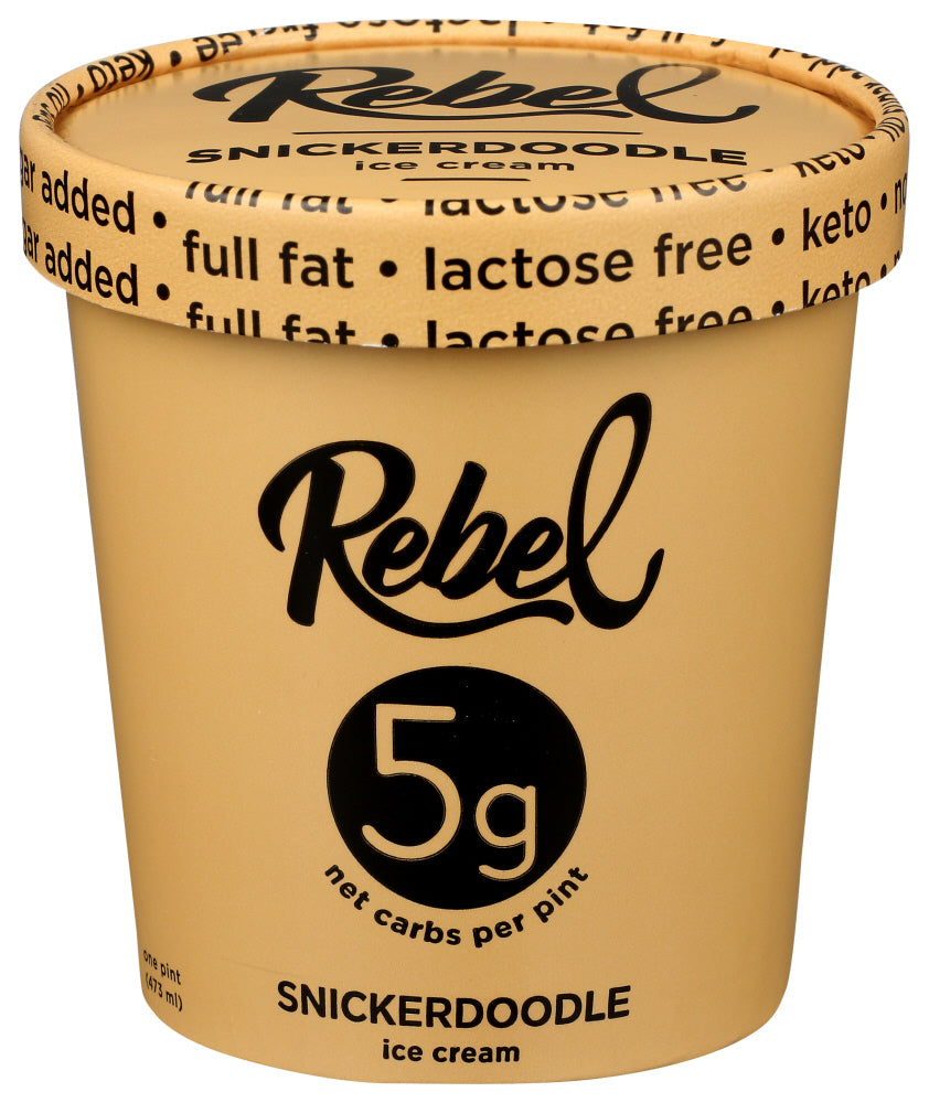 CREAM, WATER, SNICKERDOODLE DOUGH (ALMOND FLOUR, ERYTHRITOL, BUTTER, WATER, BAKING SODA, NATURAL FLAVOR, CINNAMON, SALT, SUNFLOWER LECITHIN), ERYTHRITOL, VEGETABLE GLYCERIN, EGG YOLKS, CHICORY ROOT FIBER, MILK PROTEIN ISOLATE, NATURAL VANILLA FLAVOR, CINNAMON, PERUVIAN CAROB GUM, GUAR GUM, SALT, MONK FRUIT, LACTASE ENZYME.