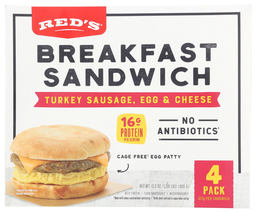 SANDWICH BUN (UNBLEACHED ENRICHED WHEAT FLOUR[WHEAT FLOUR, NIACIN [VITAMIN B-3], IRON [FERROUS SULPHATE], THIAMIN MONONITRATE[VITAMIN B-1], RIBOFLAVIN [VITAMIN B-2], FOLIC ACID], FILTERED WATER, WHEAT GLUTEN, DURUM SEMOLINA, ORGANIC CANE SUGAR, SUNFLOWER OIL, SEA SALT, YEAST, CULTURED WHEAT STARCH, CITRIC ACID, AMYLASE [ENZYME]), EGG PATTY [WHOLE EGG, WHOLE MILK, CORN STARCH, SEA SALT, WHITE PEPPER], TURKEY SAUSAGE PATTY (TURKEY, WATER, CONTAINS 2% OR LESS OF POTATO STARCH, SALT, SUGAR, SPICES), AMERICAN CHEESE [(CULTURED MILK, SALT, ENZYMES), WATER, CREAM, SODIUM PHOSPHATE, SALT, APO-CAROTENAL AND BETA-CAROTENE (COLOR)]