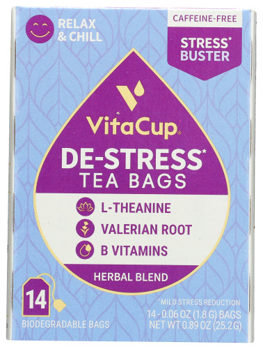 ROOIBOS, CHAMOMILE, L-THEANINE, LAVENDER, LEMON BALM, PEPPERMINT, CORNFLOWER, VALERIAN ROOT, NATURAL VANILLA FLAVOR, VITAMIN BLEND (PANTOTHENIC ACID, PYRIDOXINE, THIAMIN, METHYLCOBALAMIN, METHYLFOLATE).